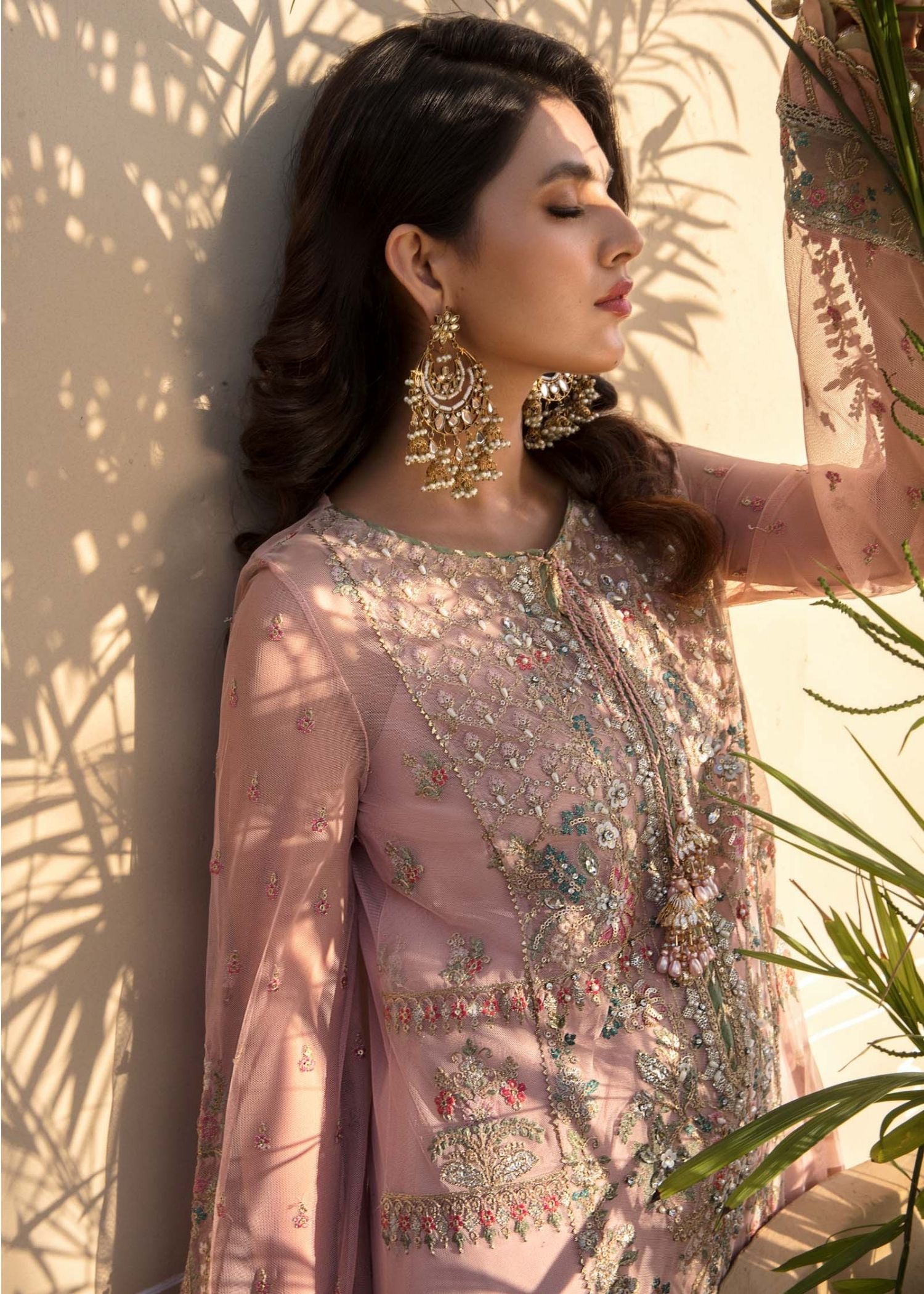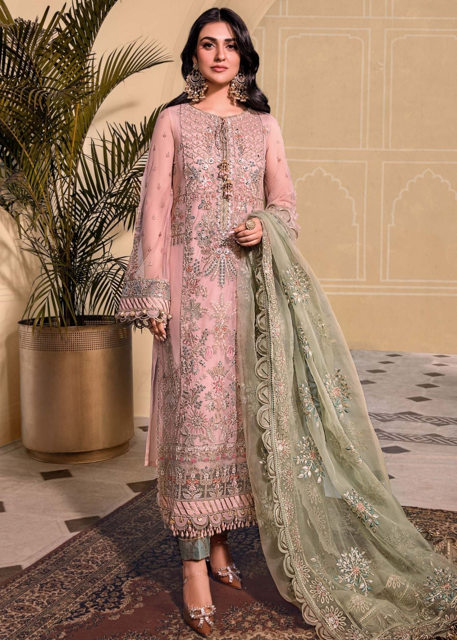 Embroidered And Hand Embellished Net Center Panel Embroidered Net Side Panel Left Embroidered Net Side Panel Right Embroidered Net Sleeves Net Back Embroidered Organza Ghera Patti-2 + Sleeve Patti-2 Embroidered Organza Front Ghera Patti-1 Embroidered Organza Sleeve Patti Embroidered Organza Dupatta Embroidered Organza Dupatta Patti